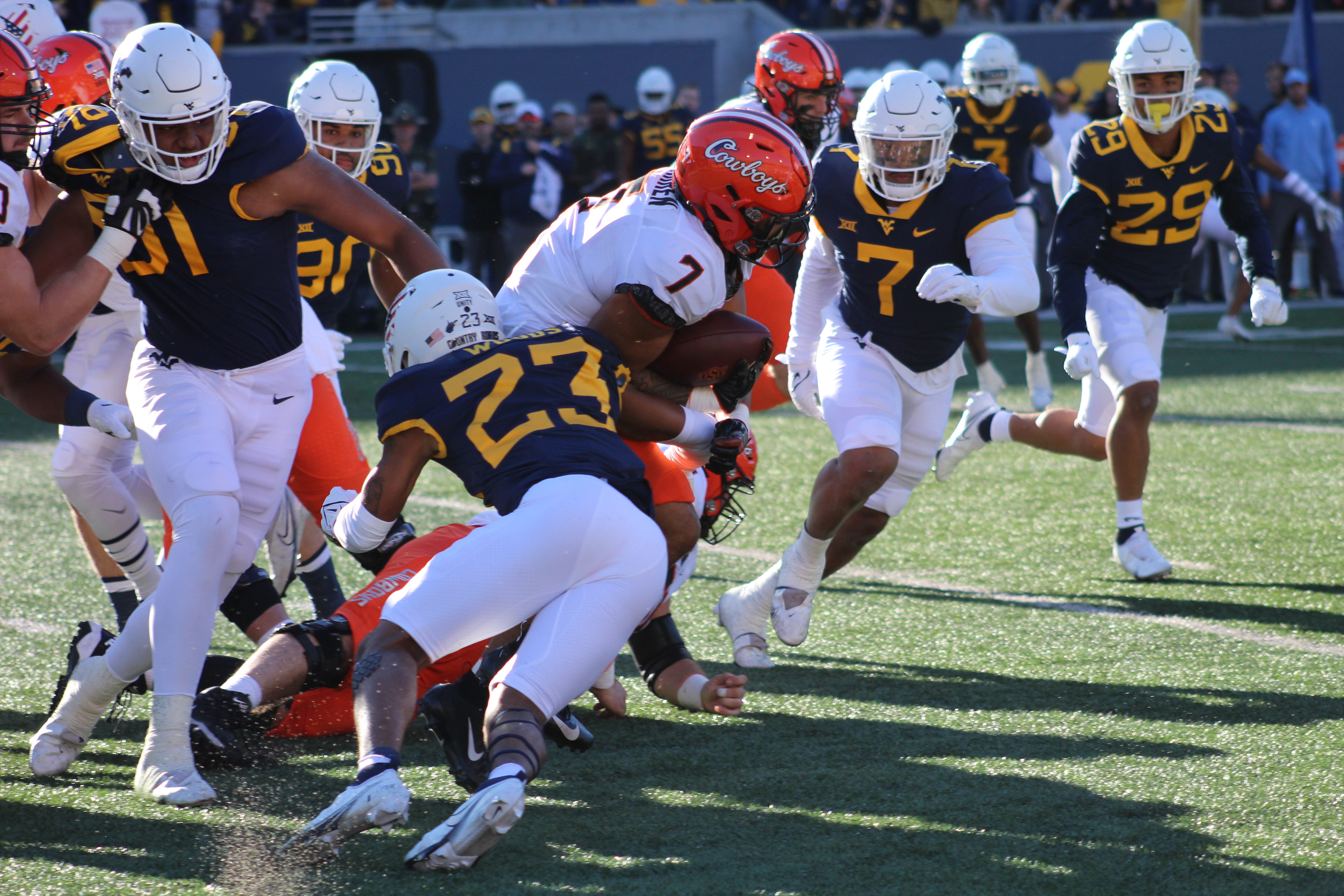 As if Wolfley was predicting the future, the following week the Mountaineers kicked it in gear against TCU. During the course of the game, we battled fiercely and managed to come out on top with the final score of 29-17. Sumpter said that win was exacly what the Mountaineers were all about.